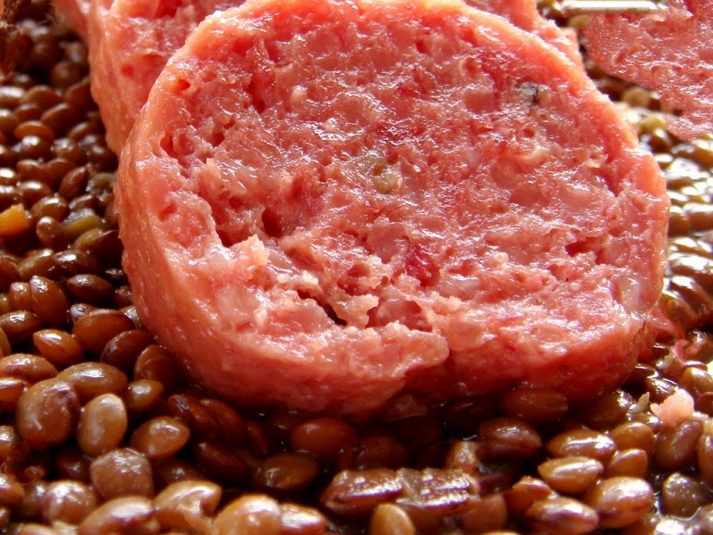Questo piatto era il tradizionale epilogo della succulenta cena del 31 dicembre, quando dopo abbondanti antipasti, ricchi primi piatti, sfiziosi secondi, e ancora dolci, frutta, caffè e ammazzacaffè, arrivava il momento più atteso. Atteso perché, nonostante le numerose calorie che ingurgitate anche soltanto con un boccone di cotechino e lenticchie, si sperava sempre che questa tipica pietanza portasse soldi, fortuna e benessere, ma visto il periodo di recessione economica non tutti sono più d’accordo.