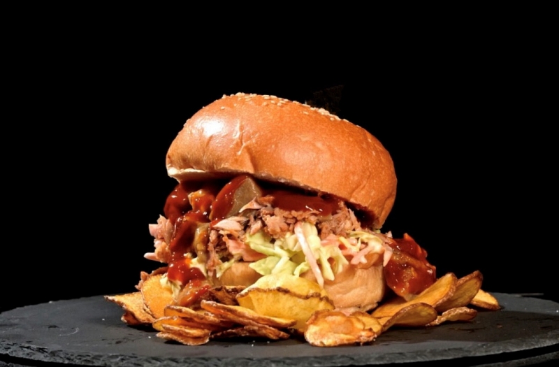 Sulla parte inferiore viene spalmata una gradevole salsa barbecue, sulla salsa viene adagiato il la carne di maiale sfilacciata, su di esso viene inserita la salsa Coleslaw, una fantastico connubio tra maionese, carote e cavolo.
