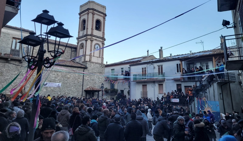 Piazza e vicoli gremiti ad Alessandria del Carretto (CS). Il borgo più alto del Parco Nazionale del Pollino in festa per l’appuntamento imperdibile con il Carnevale.