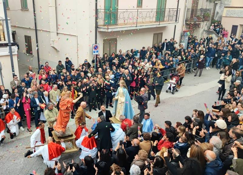 Strade gremite, questa mattina, a Soverato, dove è tornato il rito religioso più emozionante della Santa Pasqua: ‘a Cumprunta.