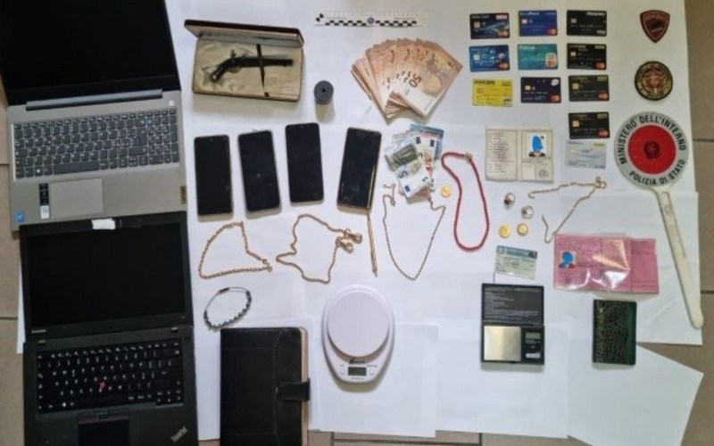 Nel corso della conseguente perquisizione domiciliare presso l’abitazione dell’uomo, noto per i suoi pregiudizi per truffa, sono stati rinvenuti diversi gioielli, una somma in contanti di 2590 euro, 2 pc portatili, 4 smartphone, 9 carte elettroniche di pagamento, materiale questo verosimilmente sottratto alle vittime nel corso dell’attività illecita. In merito, sono in corso indagini, anche sugli altri episodi denunciati, di cui almeno due, allo stato, a lui attribuibili.