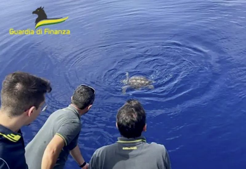 I Finanzieri della Stazione Navale di Vibo Valentia, nell’ambito delle quotidiane attività di vigilanza in mare per il contrasto alla pesca illegale, hanno avvistato al largo di Paola un esemplare di tartaruga marina Caretta Caretta, impigliata in un palangaro derivante illegale.