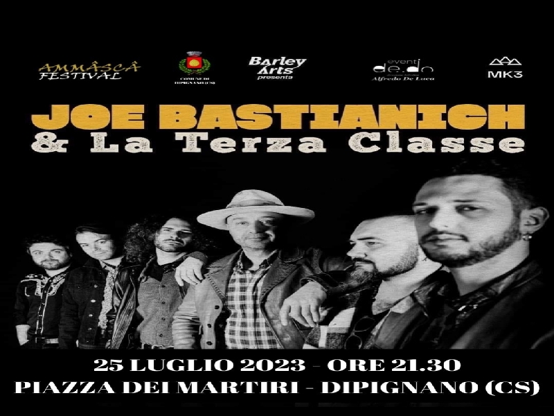 JOE BASTIANICH & La Terza Classe, il Grande Evento dell’AMMMÂSCÂ FESTIVAL 2023 organizzato dall’Amministrazione Comunale di Dipignano che si terrà nella splendida cornice di Piazza dei Martiri giorno 25 Luglio 2023 dalle ore 21.30.