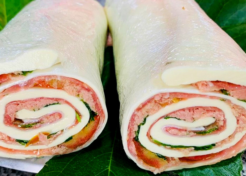 Tra le ricette più classiche con la sfoglia di mozzarella, c’è quella con il prosciutto crudo stagionato, che io amo abbinare al suino nero di Calabria, una razza autoctona che garantisce una carne magra e saporita. Basta stendere la sfoglia, coprirla con delle fettine di prosciutto, arrotolarla e tagliarla a rondelle. Il risultato è un antipasto gustoso e facile da preparare.