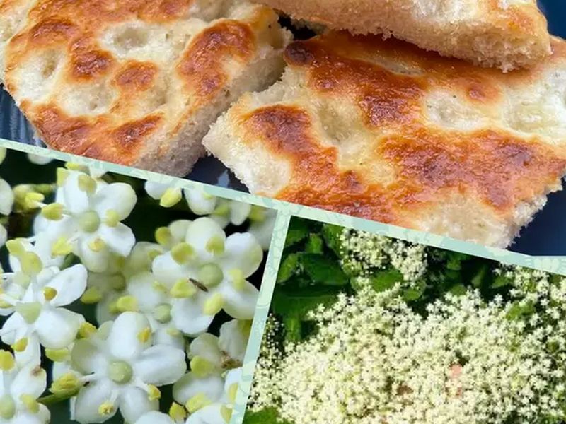 - Potete arricchire la vostra focaccia con fiori di sambuco con altri ingredienti a piacere, come olive, capperi, pomodorini, acciughe, formaggio, ecc.