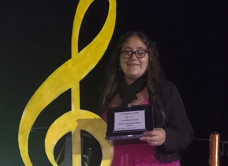 L’artista in questo concorso nazionale “L’usignolo D’oro”, è stata premiata come Migliore inedito e migliore interpretazione della sua categoria, con il suo brano “La Scia Del Tempo”.