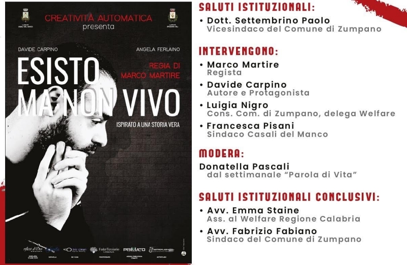 Creatività automatica è finalmente pronta a mostrare al pubblico il risultato di mesi di lavoro che hanno portato alla realizzazione di “Esisto ma non vivo”. L’evento della prima proiezione al Cinema Garden di Rende il 18 Aprile scorso.
