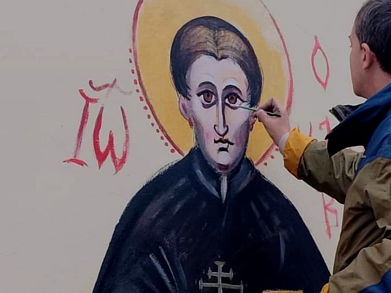 L’opera, creata dal rinomato pittore rossanese Natalino Scino (autore dell’iconico San Domenico di Guzman a Longobucco, voluto fortemente dall’Associazione VESCA), rappresenta San Giovanni Calybita secondo un antico modello, impreziosita dalla croce patriarcale e dal caratteristico attributo iconografico del vangelo d’oro.