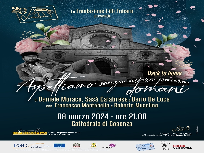 In occasione di questo significativo traguardo, la Fondazione annuncia il primo concerto solidale “Aspettiamo senza avere paura, domani. Back to home”, previsto per il 9 marzo 2024 alle ore 21:00 presso il duomo di Cosenza. Si tratta dello spettacolo – un omaggio a Lucio Dalla – ideato e scritto da Daniele Moraca, Sasà Calabrese, Dario De Luca, in cui la forma della canzone si fonde con quella della parola, quindi del teatro. “Tutti i testi delle mie canzoni sono sempre piccoli racconti, ipotesi di sceneggiature” raccontava Dalla. È così che la sua poetica e la sua musica, nella rappresentazione messa in piedi dagli autori, si dipanano in una trama orizzontale, come nell’immaginaria pellicola di un film in cui frammenti di vita sono tenuti insieme dalla musica. Canzoni cantate e recitate si articolano tra gli aneddoti della vita artistica di Dalla in uno spettacolo carico di sentimenti, intimo e leggero, familiare.