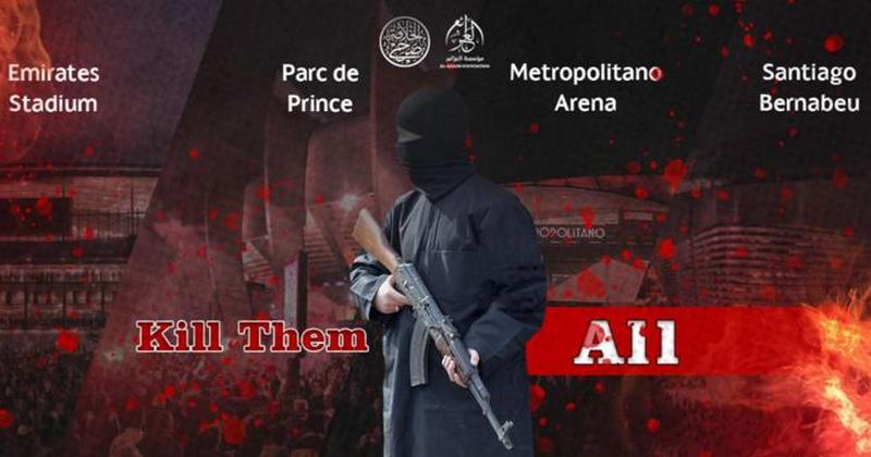 Al-Azaim, uno degli organi di propaganda dell’Isis, ha confermato queste intenzioni pubblicando l’immagine dei quattro stadi in cui si disputeranno le partite di andata – il Parco dei Principi di Parigi, il Santiago Bernabeu di Madrid, il Metropolitan sempre di Madrid e l’Emirates di Londra – accompagnata dalla didascalia “Uccideteli tutti”.