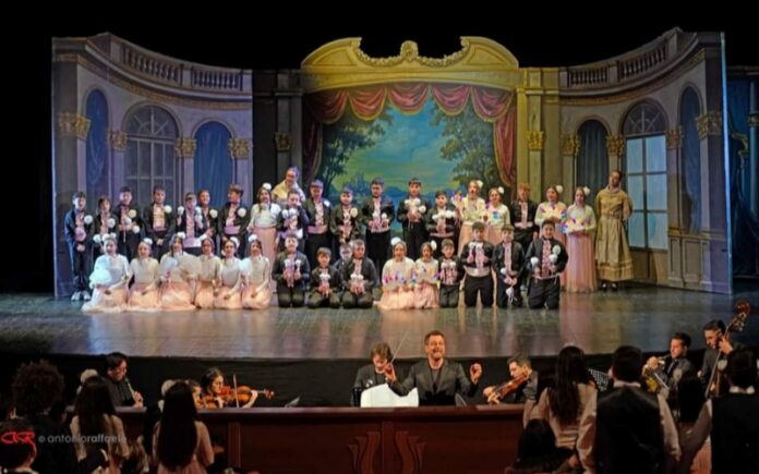 La dirigente Maria Brutto da parte sua, ringraziando tutti, si è compiaciuta della riuscita dell’evento, che ha portato a compimento e a sintesi un lungo lavoro didattico e organizzativo. “Il coinvolgimento della comunità educante – ha dichiarato – ha visto anche i genitori partecipi oltre che gli allievi traboccanti di gioia, completamente calati nella parte e rapiti sia dal contesto del grande teatro, il Politeama di Catanzaro con le sue linee morbide e raffinate, che dalla mirabile regia delle tutor di scena e dalla sapiente ed empatica guida del maestro di orchestra,, il Maestro Germano Neri, capace di ipnotizzare 200 bambini dirigendo all’unisono voci e pause in un grande e sincronizzato coro. Diventa indimenticabile un’esperienza così immersiva, questo cantare con Violetta ed Alfredo, fra lo strusciare dei veli dei costumi di scena di Violetta per i quali sono stati impiegati, in un’ opera di alta sartoria, ben 1500 petali.