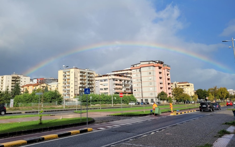 Sulla città di Cosenza era visibile l’arcobaleno, finito nel mirino di molte persone che hanno colto l’attimo e l’hanno immortalato, imponente e maestoso.
