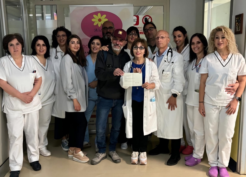 Tutto il ricavato ottenuto con la vendita nella presentazione della sua ultima fatica letteraria “Sarà l’aurora-la mia lotta contro il cancro” edito da Grafiché editore svoltasi il 17 maggio scorso, è stato versato attraverso un bonifico all’Associazione Onlus Alice, operante nella corsia del reparto stesso.
