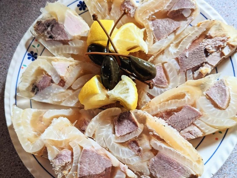 - La gelatina di maiale è una specialità calabrese preparata con parti come muso e orecchie, pulite e cotte, poi gelatinizzate.