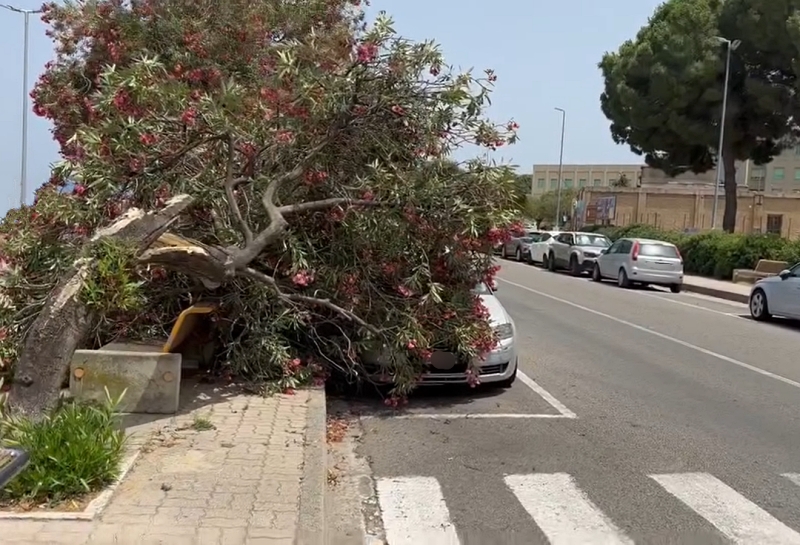Fa caldo ma c’è forte vento in Calabria, albero cade su auto a Soverato