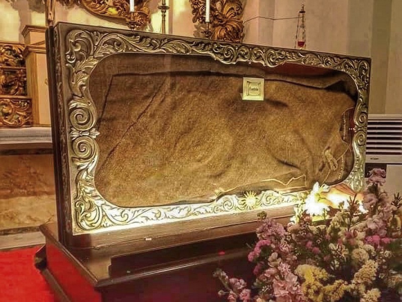 Il “Sacro Mantello”, racchiuso in una teca d’argento e vetro, venne utilizzato dal Santo come naviglio per attraversare lo Stretto di Messina da un piccolo porto della Città di Reggio Calabria, poichè deciso a raggiungere la Sicilia per visitare alcuni conventi appartenenti all’Ordine dei Minimi.