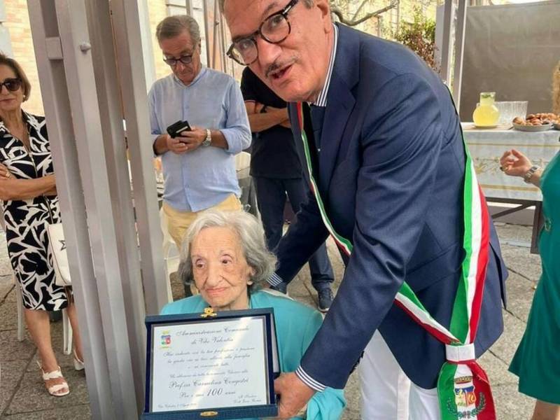 E’ questo il messaggio contenuto sulla targa consegnata dal sindaco di Vibo Enzo Romeo alla professoressa Carmelina Congestrì per in suoi “primi” 100 anni.