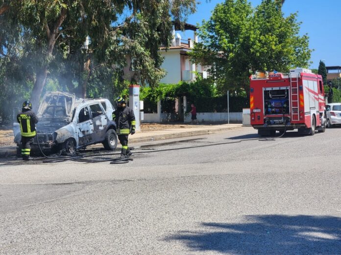 Il personale del 115 ha lavorato per oltre un’ora prima di riuscire a spegnere l’incendio che ha completamente distrutto la Rexton.