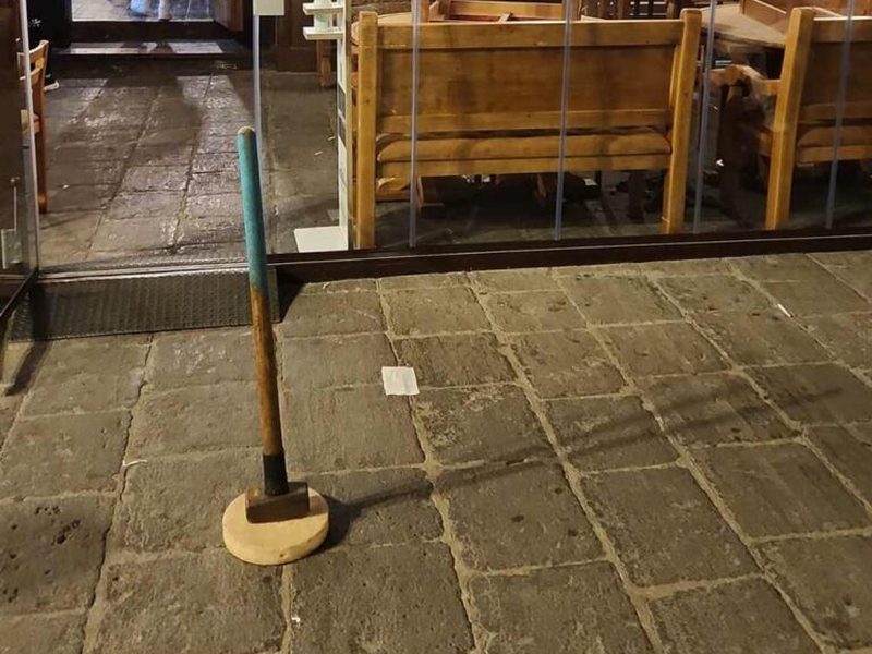Così Massimiliano Arzente, titolare della pizzeria “Vecchio mattatoio” di Lamezia Terme, in un post sul suo profilo facebook, a corredo del quale pubblica la foto di un grosso martello che sarebbe stato lasciato a scopo intimidatorio davanti l’ingresso del suo locale, ubicato su corso Numistrano, nel centro della città.