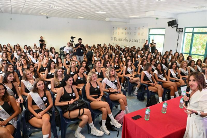 Patrizia Mirigliani ha incontrato le concorrenti di Miss Italia nella sala Academy del “Centro Vacanze De Angelis” di Numana (AN).