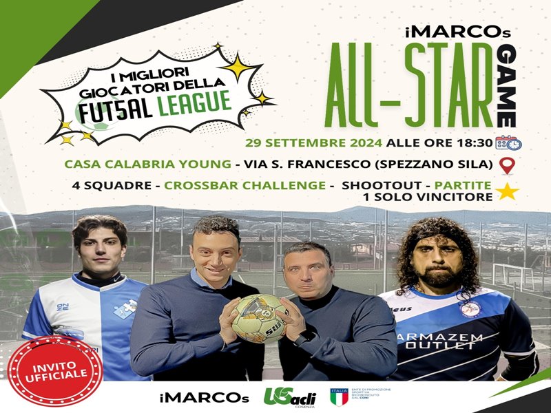 Ospiterà la manifestazione targata Us Acli-iMARCOs Casa Calabria Young, struttura di Spezzano Sila dell’Asd che partecipa anche alla Futsal League, gestita da Romualdo Rizzo, che ha subito sposato la causa dell’All Star Game.