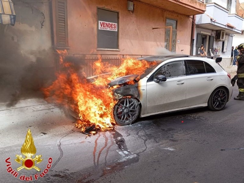 All’arrivo vi era, in pieno centro abitato, una Mercedes Classe A che durante la marcia era andata in fiamme, costringendo il conducente, residente ad Isola, a scendere ma rimanendo fortunatamente illeso.