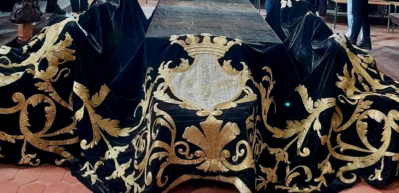 La meravigliosa coltre funebre in seta, che verrà esposta proprio in occasione della visita guidata, è una delle preziose opere d’arte che compongono il patrimonio della chiesa di Santa Maria del Carmine. Essa risale al XVII secolo, è costituita da otto teli di velluto di seta catanzarese ed è rifinita in oro a rilievo.