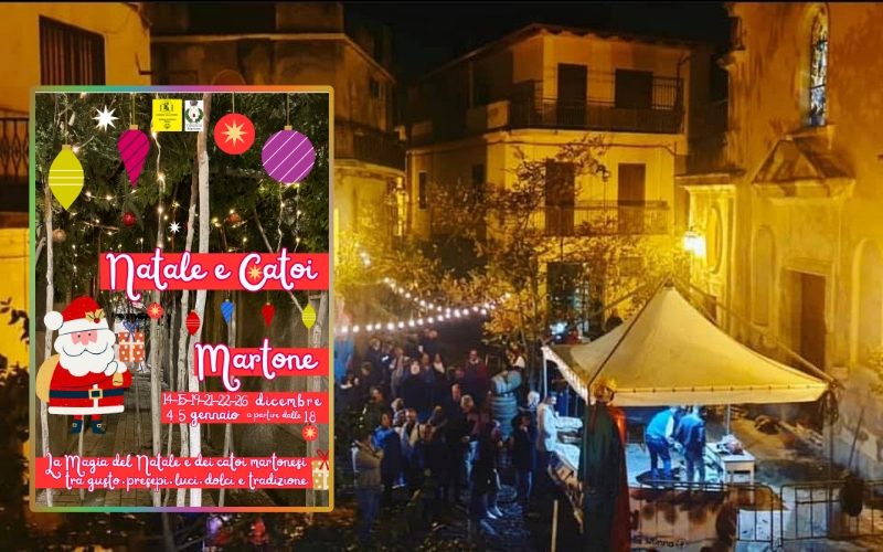 Sarà un Natale diverso quello si potrà vivere nel centro storico di Martone, dove passeggiando tra i vicoli si percepirà una fantastica atmosfera natalizia. Appuntamento imperdibile previsto nei giorni 14, 15, 19, 21, 22, 26 dicembre e 4, 5 gennaio, con orario di inizio fissato alle 18.
