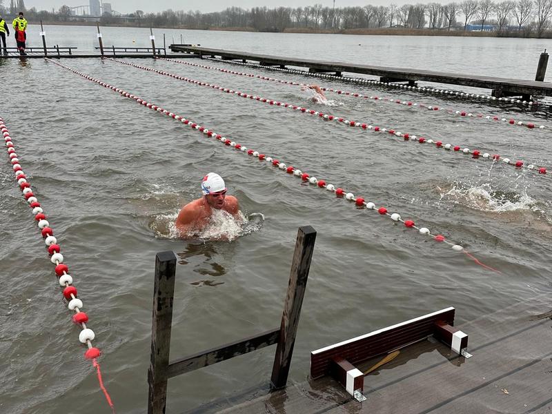 Questa gara, molto provante a livello fisico, è stata fatta come preparazione per un futuro tentativo di Ice Mile a rana (miglio marino in acque gelide). Nessuno ci è mai riuscito, sarebbe la prima volta in assoluto nella storia di questo sport. Amsterdam, 14 dicembre 2024, temperatura dell’acqua 4°C, dell’aria 1°C.