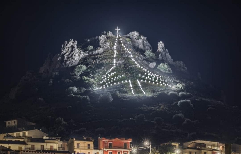 Posizionato in una location suggestiva, l’albero risplende con colori vivi che danzano nella notte, riflettendo sui pendii montuosi e creando un’atmosfera fiabesca. Il monte intero sembra avvolto in una magia natalizia che incanta residenti e visitatori, portando calore e gioia durante queste festività.