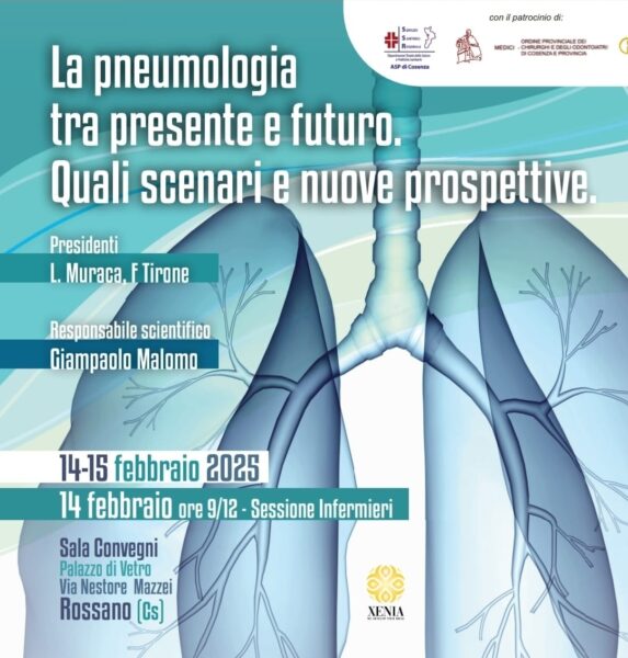 I prossimi 14 e 15 febbraio, nella sala convegni “Palazzo di vetro” a Corigliano-Rossano, avrà luogo uno degli appuntamenti sanitari più attesi, incentrato sulla pneumologia tra presente e futuro. “Quali scenari e nuove prospettive”. L’evento, organizzato dal provider Xenia di Francesca Mazza, ospiterà importanti relatori e professionisti del mondo sanitario. Responsabile scientifico, Giampaolo Malomo. Presidenti del congresso Luigi Muraca e Francesco Tirone.