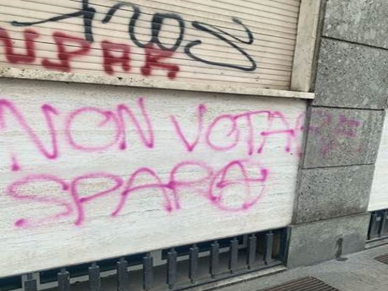 Un altro atto intimidatorio. Questa notte, la sede dell’agenzia di comunicazione di Klaus Davi è stata imbrattata con la scritta “non votare spara”, apposta proprio sotto gli uffici del giornalista italo-svizzero, in via Santa Sofia, nel centro di Milano. L’inchiostro rosa sembra essere stato applicato tra la serata di ieri e la notte scorsa.