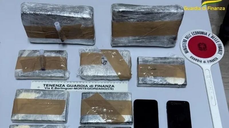 Durante il controllo di polizia il conducente del veicolo ha mostrato un atteggiamento esitante e nervoso, che ha insospettito sin da subito i militari. Per tale motivo le fiamme gialle cosentine hanno approfondito il controllo eseguendo una perquisizione accurata dell’autovettura, rinvenendo, all’interno di un sacco posto sotto il sedile passeggero, nove “panetti” confezionati contenenti polvere bianca.