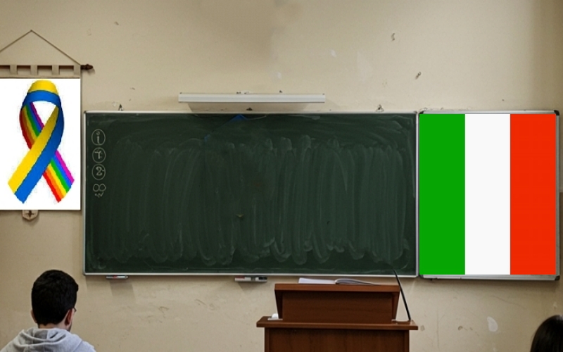 Dalle aule un messaggio universale: un nastrino accanto al tricolore