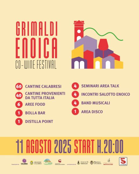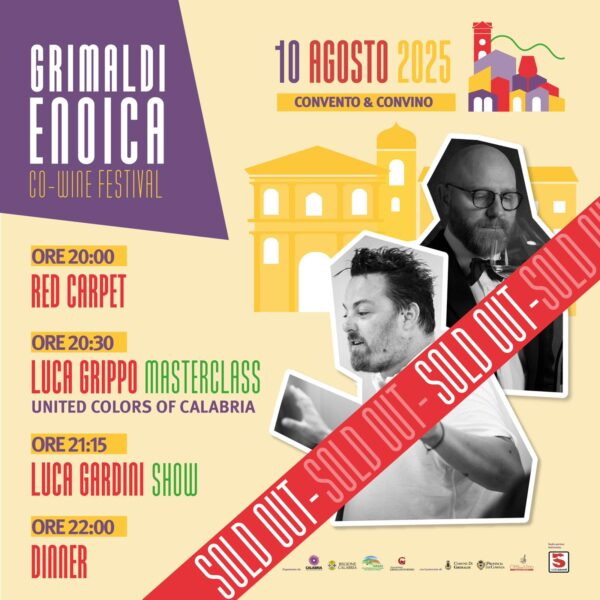 Un boom. Di richieste, apprezzamenti e consensi. La “Grimaldi Enoica Co-Wine Festival” certamente lascerà il segno. Evento completamente diverso rispetto a quelli visti finora in Calabria. Tanto che la prima sera, domenica sera 10 agosto, i posti sono già sold out da giorni. Le masterclass con Luca Gardini, critico enologico tra i più influenti a livello internazionale, curatore della Guida ai 1000 Vini d’Italia e della Guida ai Ristoranti d’Italia de L’Espresso e Luca Grippo, sommelier, giornalista, blogger di settore e tantissimi altri wine lovers hanno attirato attenzioni e richieste. Poco male: tutti invitati il giorno dopo, lunedì 11 agosto, con l’evento principale del festival ovvero la Wine pop night, con numeri da capogiro: 60 cantine calabresi, 40 cantine provenienti da tutta Italia, 6 aree food, bolla bar, Distilla point , 4 seminari, 4 talk, 4 band musicali e un’area disco con in console Luigi D’Alife. Si attende, ovviamente, il grande pubblico per condividere passioni, vino, chiacchiere e cibo. I talk previsti, con personalità importanti del vino calabrese e nazionale, oltre che addetti ai lavori, tra giornalisti e social garden, sono l’altro motore- importante- dell’iniziativa organizzata da Calabria Straordinaria, Regione Calabria, Arsac, associazione “Grimaldi in rosso”, con il patrocinio del Comune di Grimaldi, Provincia di Cosenza e Città del vino.