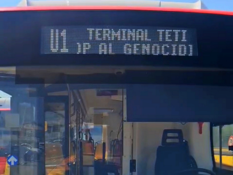 L’azienda ha deciso di far circolare i propri autobus con la scritta “STOP GENOCIDIO”, un messaggio che ha subito catturato l’attenzione.