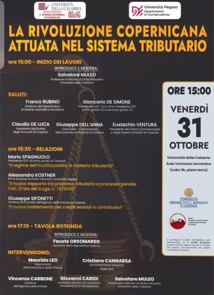 L’Università della Calabria si prepara ad ospitare un evento di primissimo piano per il mondo giuridico e contabile: il convegno intitolato “La Rivoluzione Copernicana attuata nel Sistema Tributario”. L’incontro, frutto della collaborazione tra l’Università della Calabria e l’Università Pegaso, e patrocinato dagli Ordini professionali di Cosenza, si pone come momento di riflessione cruciale sulle trasformazioni in atto nel panorama fiscale italiano.