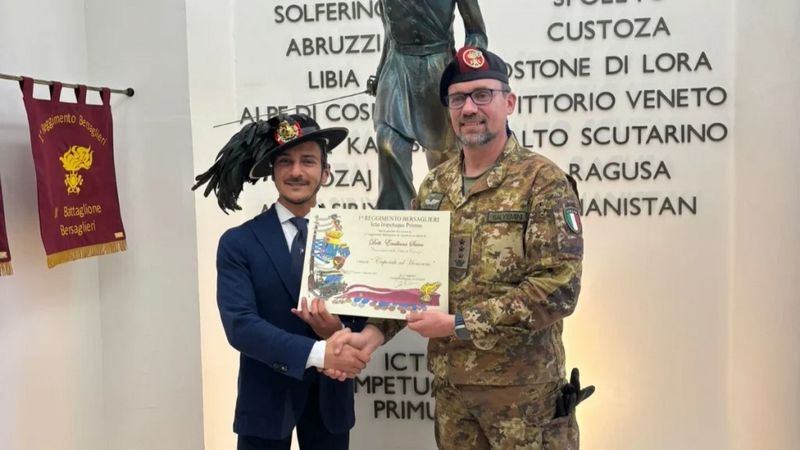 Il momento clou della cerimonia è stato la consegna della tradizionale vaira, l’iconico cappello piumato dei Bersaglieri. A conferire l’onorificenza a Sacco è stato il Comandante del Primo Reggimento, il Colonnello Massimo Salvemini. Questo titolo simbolico è destinato a coloro che dimostrano un legame speciale con i principi di disciplina e servizio, e che contribuiscono attivamente alla diffusione della cultura dei Bersaglieri nel territorio.