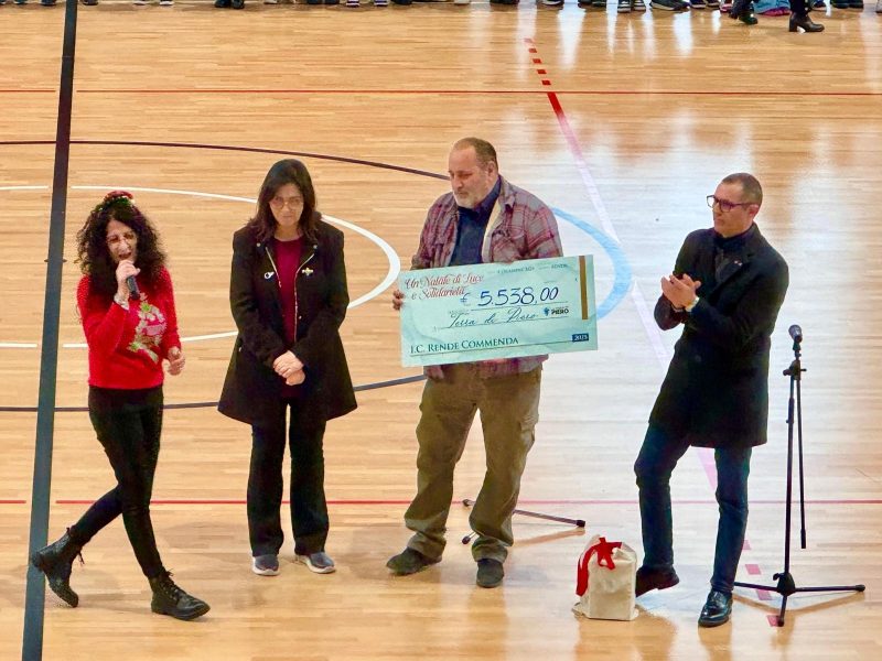 Alla cerimonia di consegna erano presenti rappresentanti istituzionali e dell’associazione beneficiaria, tra cui l’Assessore all’Istruzione del Comune di Rende, Stefania Belvedere, il Responsabile dell’Ufficio Scuole del Comune, Gianfranco Salerno, e il Presidente dell’associazione “La Terra di Piero”, Sergio Crocco. La Dirigente Scolastica dell’IC Rende-Commenda, Dott.ssa Simona Sansosti, ha proceduto alla consegna ufficiale della somma raccolta.