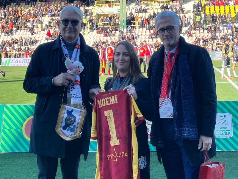 Prima del fischio d’inizio, il club giallorosso ha voluto omaggiare l’eccellenza sportiva del territorio celebrando i successi di Noemi Canino, reduce dai trionfi nel nuoto alle Deaflympics 2025 di Tokyo.