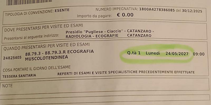 Fazio, già operato per l’inserimento di una protesi a una gamba, accusa oggi gravi problemi all’altro arto. Nonostante il medico abbia prescritto con carattere d’urgenza un’ecografia diagnostica, passaggio essenziale per evitare danni irreversibili, la risposta del Centro Unico di Prenotazione è stata raggelante: l’appuntamento è disponibile solo tra quasi due anni.