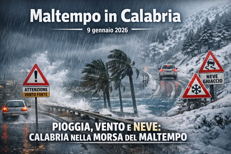 Il maltempo continua a interessare la Calabria anche oggi, 9 gennaio 2026, confermando una fase atmosferica instabile che non concede pause rispetto alla giornata di ieri. Piogge diffuse, venti forti e nevicate nelle aree montane stanno caratterizzando un inizio di anno segnato da condizioni meteorologiche difficili in gran parte della regione.