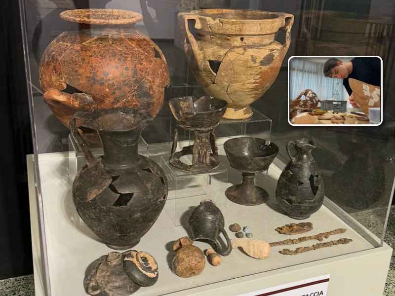 Il percorso professionale e umano di Luigi Verrino ha coperto ogni fase della ricerca archeologica. Grazie a un impegno instancabile, sono stati recuperati oltre 2.700 frammenti. Il neo-archeologo si è occupato personalmente dell’identificazione, della catalogazione e del restauro di molti di questi pezzi, che ora hanno trovato una collocazione definitiva. Alcuni dei reperti più significativi, databili tra la fine del VII e il secondo quarto del VI secolo a.C., sono già esposti e fruibili presso il Museo delle Antichità etrusche e italiche della Sapienza.