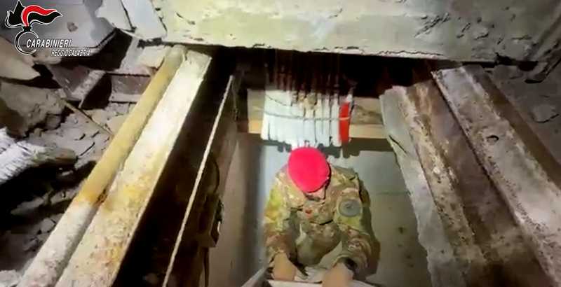 Un vano in cemento armato, protetto da una botola a scomparsa e completamente invisibile a un primo sguardo, è stato individuato dai Carabinieri della Compagnia di Bianco nel Comune di San Luca.
